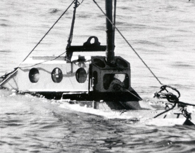 For example, a small submersible vessel was designed and built in the department in the early 1950s. The boat was intended to be a prototype inspection craft to examine ship hulls and propulsive gear from underwater. It was driven by a modified torpedo motor- a radial compressed-air motor, adapted for the purpose by department members. The concept for the boat was deemed to be highly creative, but it never entered production and after completion of the test program, it was broken up and disposed of in Navy Bay, adjacent to the College grounds. Portions of her hull were recovered by scuba divers in the summer of 2000 but were ultimately returned to Navy Bay.