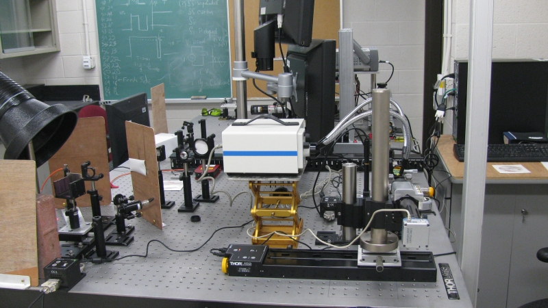 Le micro-usinage de petits trous (~50-60 µm) dans le cœur d’une fibre optique conventionnelle permet de contenir une substance fluorescente à analyser. Puisque les fibres se couplent bien à plusieurs instruments tels des spectromètres, on favorise souvent les fibres optiques comme plateforme d’essais.