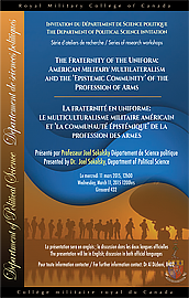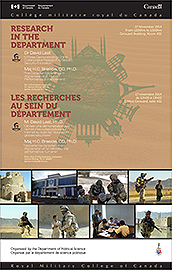 15 oct. : Table ronde sur « La crise syrienne: perspectives régionales et internationales ». Plusieurs du CMR, de l’Université Queen's et autres présenteront leur analyse de la crise syrienne. Entre autres: Houchang-Hassan-Yari (Iran), Pierre Jolicoeur (Russie), Jane Boulden (ONU), A.G. Dizboni (groupes syriens), Adbelkerim Ousman (Arabie Saoudite et Qatar), Anthony Seaboyer (communauté internationale), Stephanie von Hlatky (OTAN), Jan von der Felsen (Allemagne), Col. Christopher J. Barron (É.U.). L’événement sera bilingue.